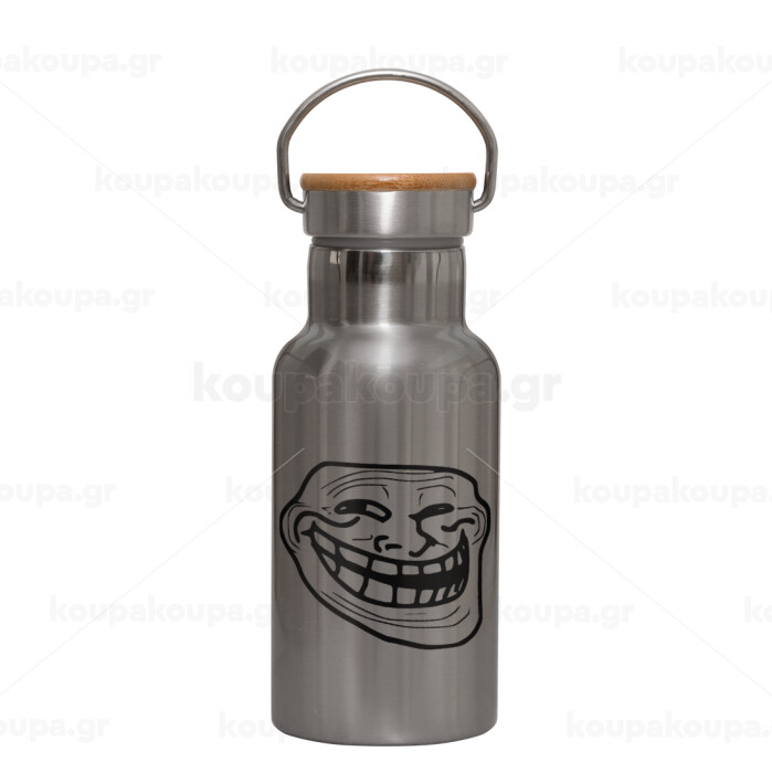 Troll face, Stainless steel metallic thermos flask, silver with a bamboo lid, double-walled, 350ml.