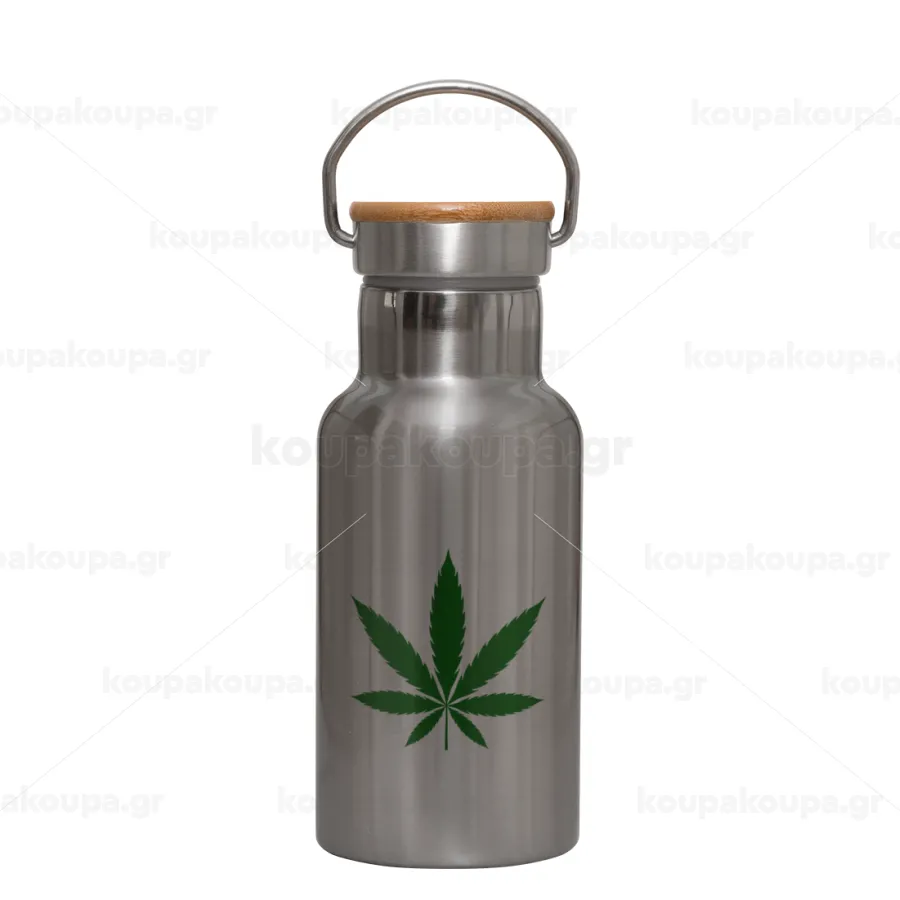 Weed, Stainless steel metallic thermos flask, silver with a bamboo lid, double-walled, 350ml.