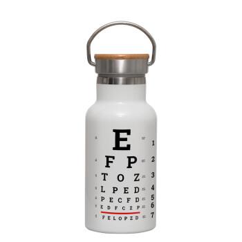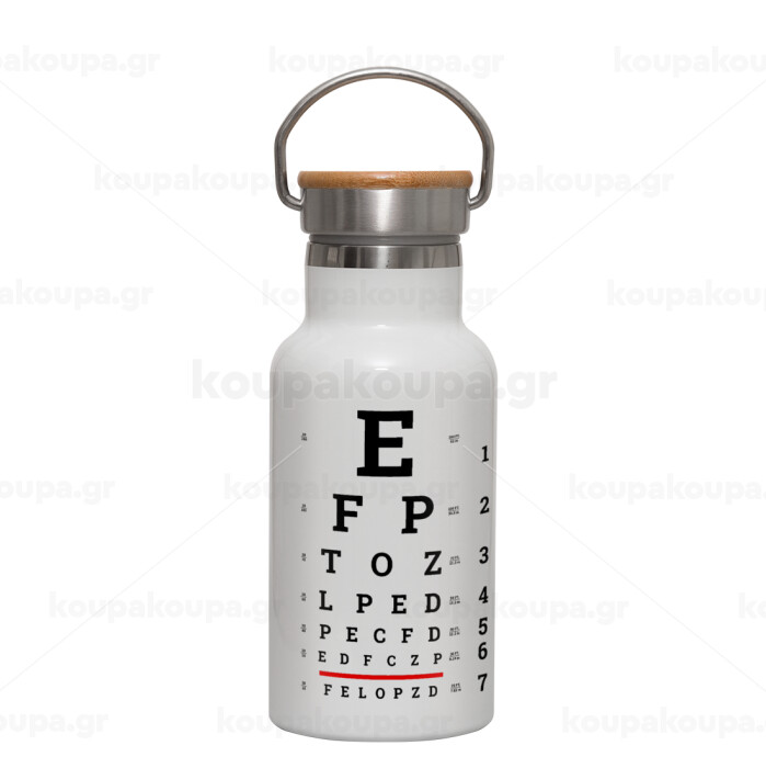 EYE test chart, Metallic thermos (Stainless steel) White with wooden lid (bamboo), double-walled, 350ml