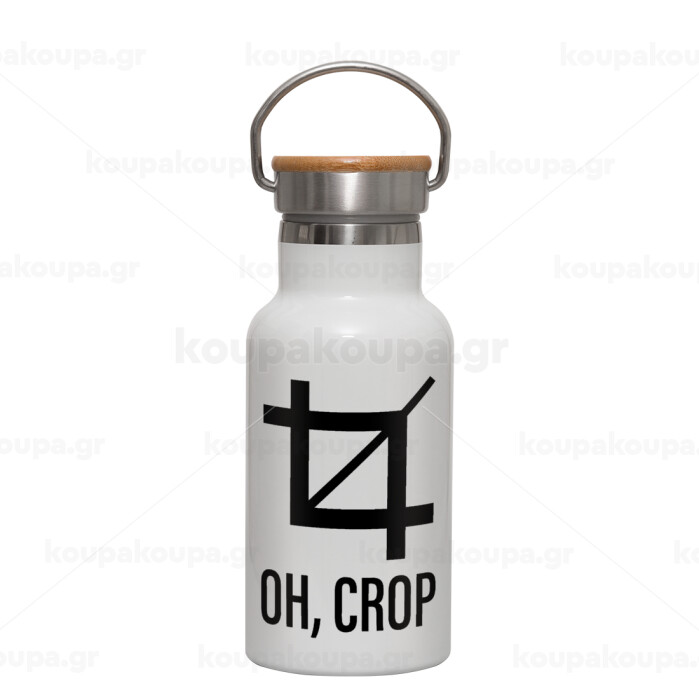 Oh Crop, Metallic thermos (Stainless steel) White with wooden lid (bamboo), double-walled, 350ml