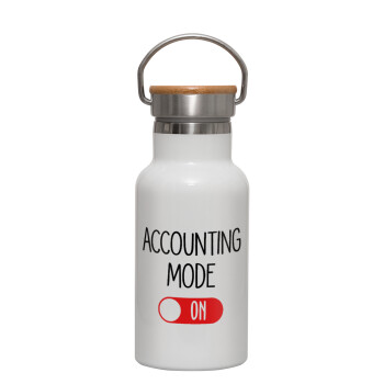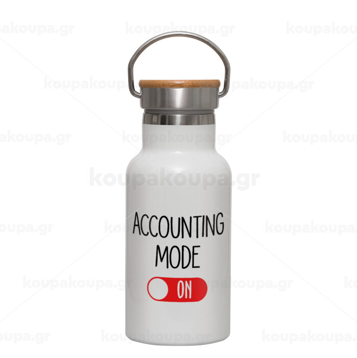 ACCOUNTANT MODE ON, Metallic thermos (Stainless steel) White with wooden lid (bamboo), double-walled, 350ml