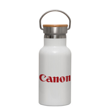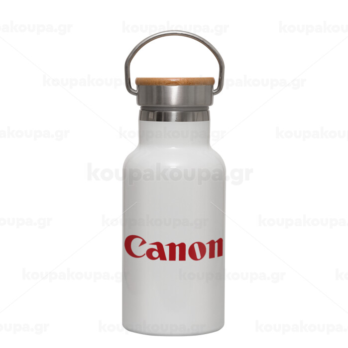 Canon, Metallic thermos (Stainless steel) White with wooden lid (bamboo), double-walled, 350ml