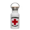 Lifeguard Save & Rescue, Metallic thermos (Stainless steel) White with wooden lid (bamboo), double-walled, 350ml