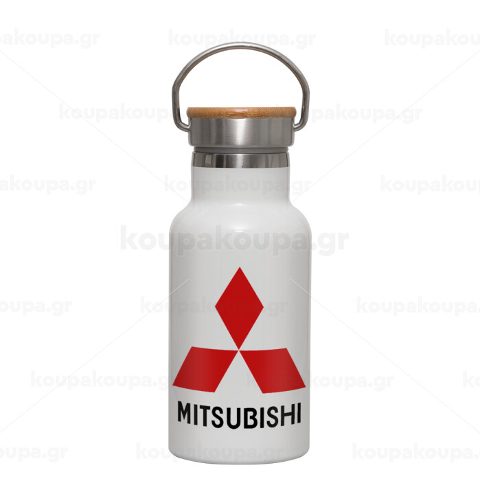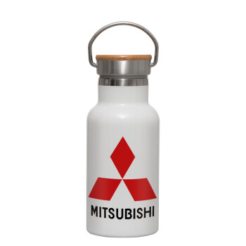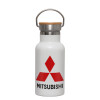 mitsubishi, Metallic thermos (Stainless steel) White with wooden lid (bamboo), double-walled, 350ml