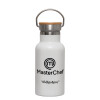 Master Chef, Metallic thermos (Stainless steel) White with wooden lid (bamboo), double-walled, 350ml