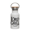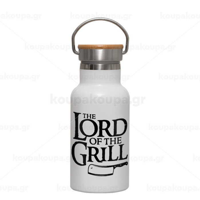 The Lord of the Grill, Metallic thermos (Stainless steel) White with wooden lid (bamboo), double-walled, 350ml
