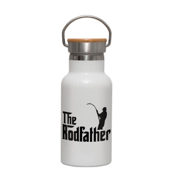 The rodfather, Metallic thermos (Stainless steel) White with wooden lid (bamboo), double-walled, 350ml