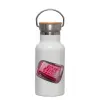 Fight Club, Metallic thermos (Stainless steel) White with wooden lid (bamboo), double-walled, 350ml