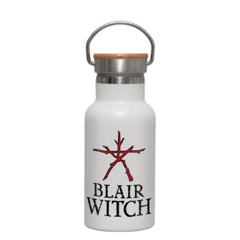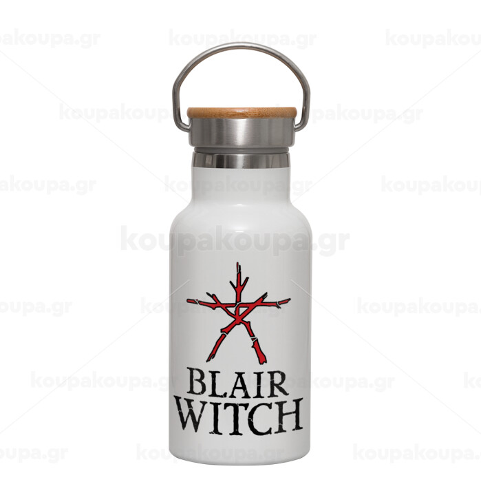 The Blair Witch Project , Metallic thermos (Stainless steel) White with wooden lid (bamboo), double-walled, 350ml