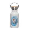 Frozen Olaf, Metallic thermos (Stainless steel) White with wooden lid (bamboo), double-walled, 350ml