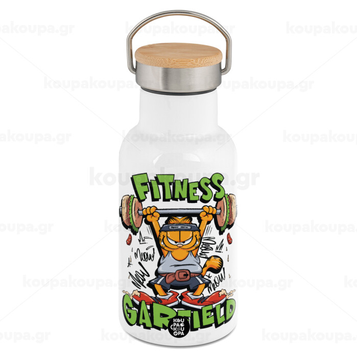 Garfield Fitness, Metallic thermos (Stainless steel) White with wooden lid (bamboo), double-walled, 350ml