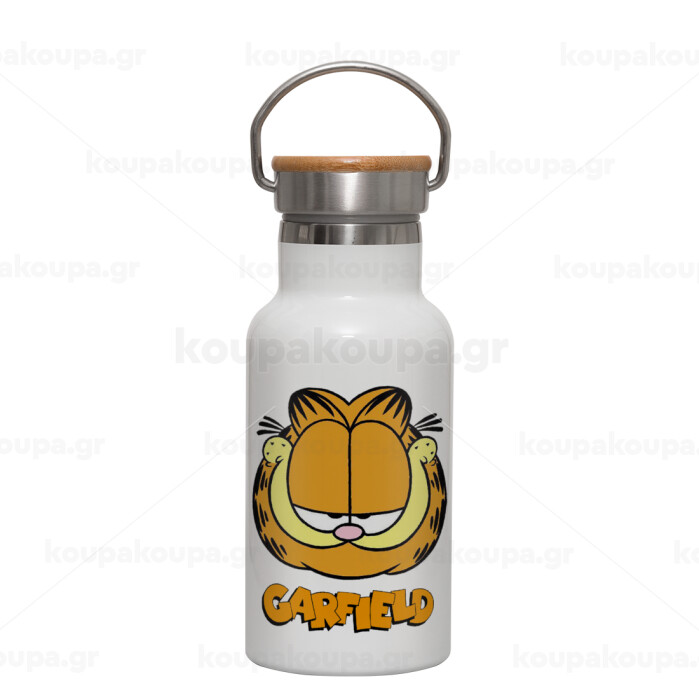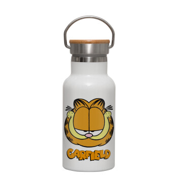 Garfield, Metallic thermos (Stainless steel) White with wooden lid (bamboo), double-walled, 350ml