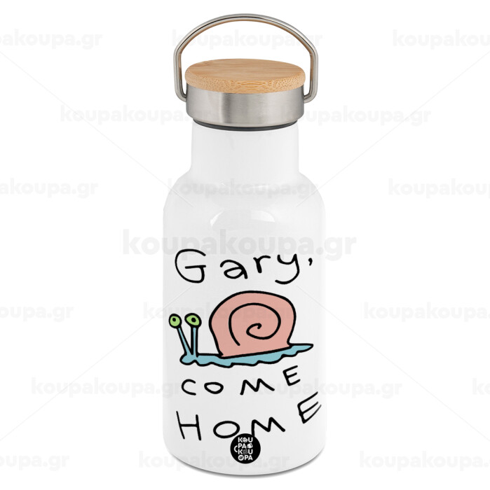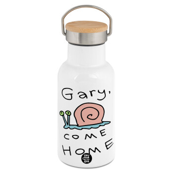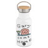 Gary come home, Metallic thermos (Stainless steel) White with wooden lid (bamboo), double-walled, 350ml