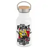 Minions Let's fight with kung fu sounds, Metallic thermos (Stainless steel) White with wooden lid (bamboo), double-walled, 350ml
