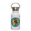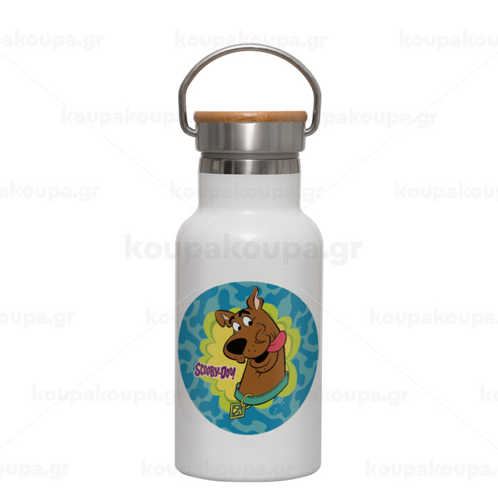 Scooby Doo, Metallic thermos (Stainless steel) White with wooden lid (bamboo), double-walled, 350ml