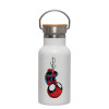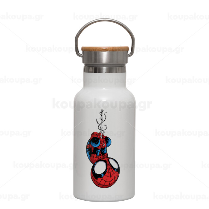 Spiderman upside down, Metallic thermos (Stainless steel) White with wooden lid (bamboo), double-walled, 350ml
