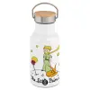 The Little prince classic, Metallic thermos (Stainless steel) White with wooden lid (bamboo), double-walled, 350ml