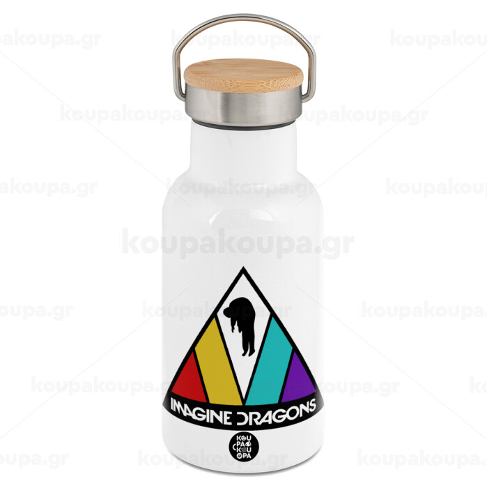Imagine Dragons, Metallic thermos (Stainless steel) White with wooden lid (bamboo), double-walled, 350ml