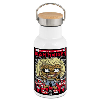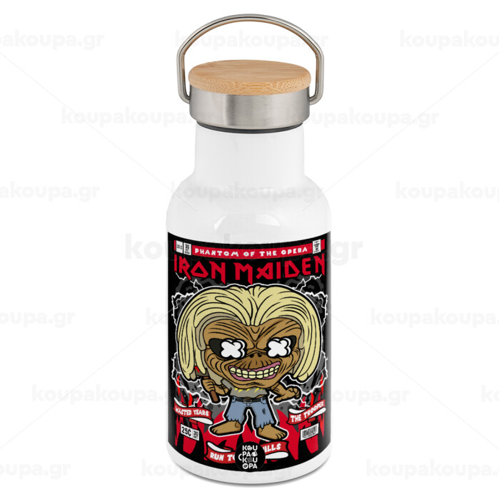 Iron maiden (eddie), Metallic thermos (Stainless steel) White with wooden lid (bamboo), double-walled, 350ml