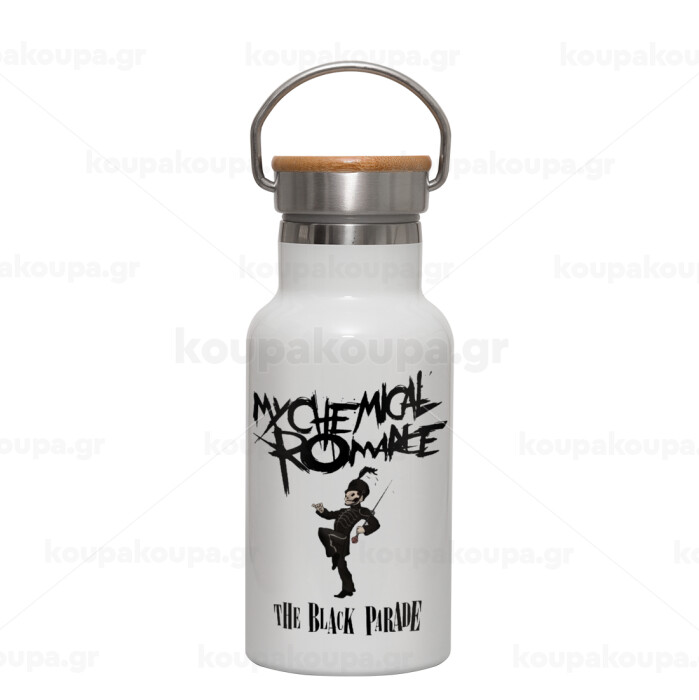 My Chemical Romance Black Parade, Metallic thermos (Stainless steel) White with wooden lid (bamboo), double-walled, 350ml