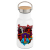 Snoop Dogg, Metallic thermos (Stainless steel) White with wooden lid (bamboo), double-walled, 350ml