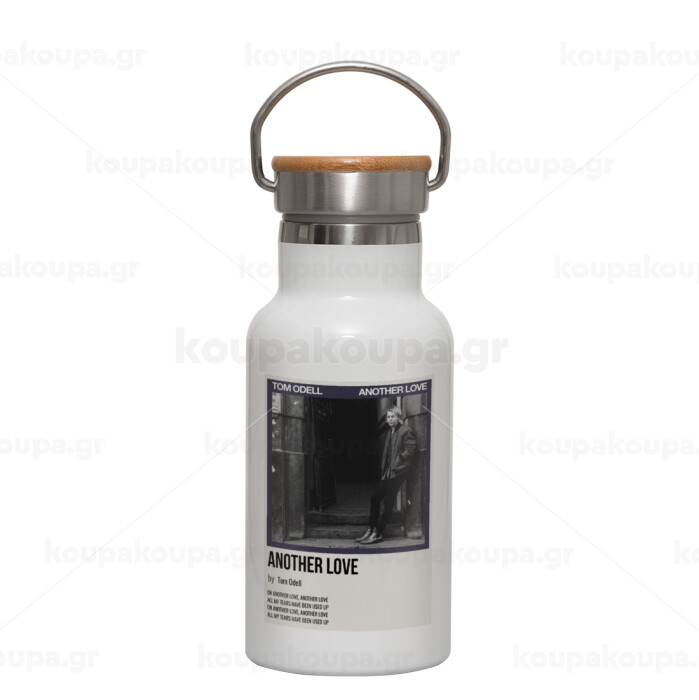 Tom Odell, another love, Metallic thermos (Stainless steel) White with wooden lid (bamboo), double-walled, 350ml