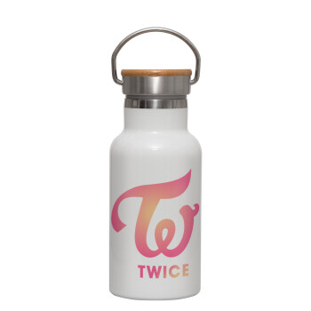 Twice, Metallic thermos (Stainless steel) White with wooden lid (bamboo), double-walled, 350ml