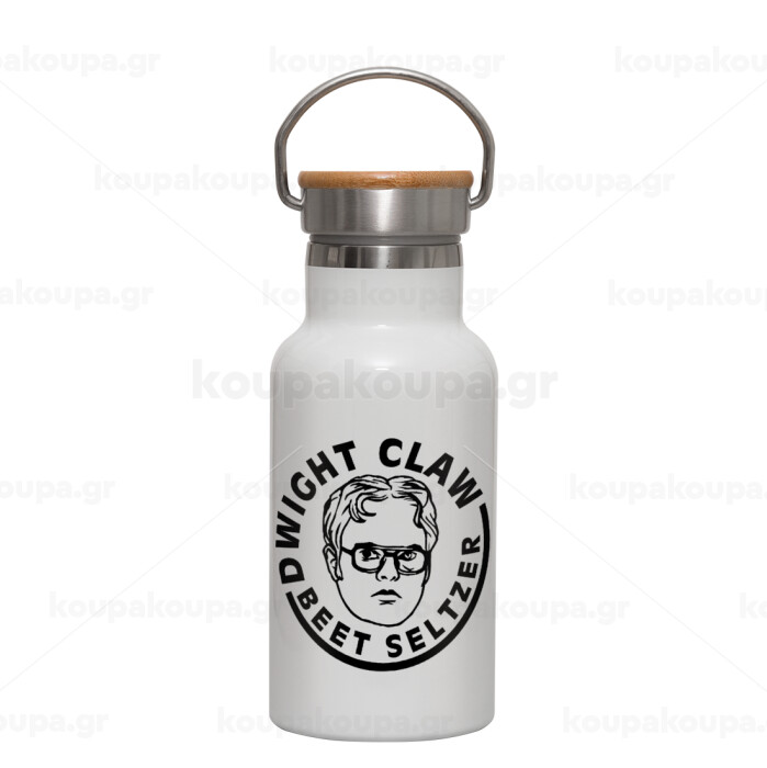 The office Dwight Claw (beet seltzer), Metallic thermos (Stainless steel) White with wooden lid (bamboo), double-walled, 350ml