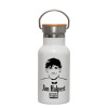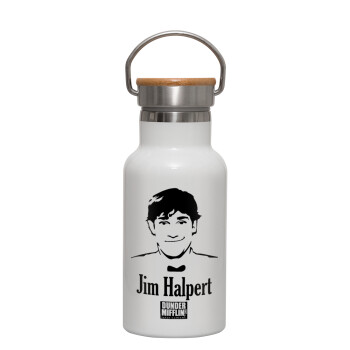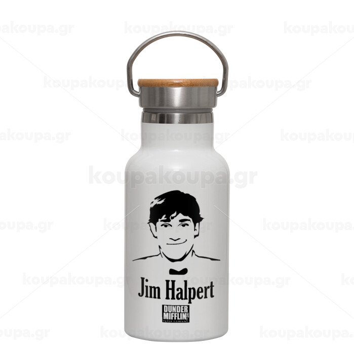 The office Jim Halpert, Metallic thermos (Stainless steel) White with wooden lid (bamboo), double-walled, 350ml