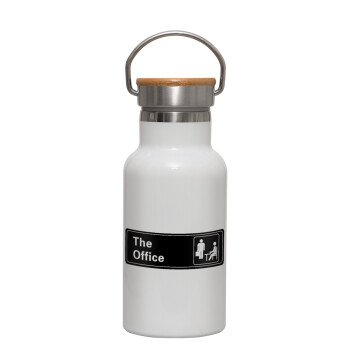 The office, Metallic thermos (Stainless steel) White with wooden lid (bamboo), double-walled, 350ml