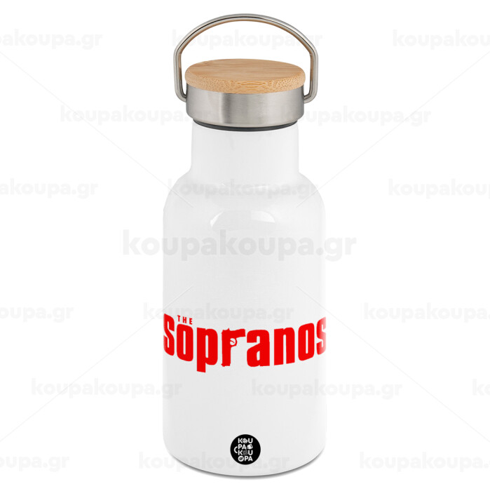 The Sopranos, Metallic thermos (Stainless steel) White with wooden lid (bamboo), double-walled, 350ml