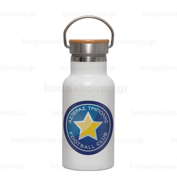 Asteras Tripolis, Metallic thermos (Stainless steel) White with wooden lid (bamboo), double-walled, 350ml