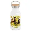 Karim Benzema, Metallic thermos (Stainless steel) White with wooden lid (bamboo), double-walled, 350ml