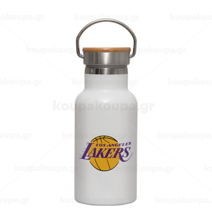 Lakers, Metallic thermos (Stainless steel) White with wooden lid (bamboo), double-walled, 350ml