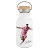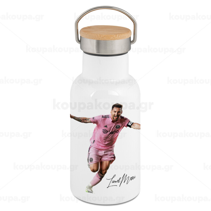 Lionel Messi inter miami jersey, Metallic thermos (Stainless steel) White with wooden lid (bamboo), double-walled, 350ml