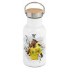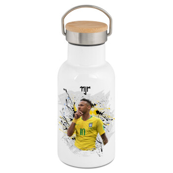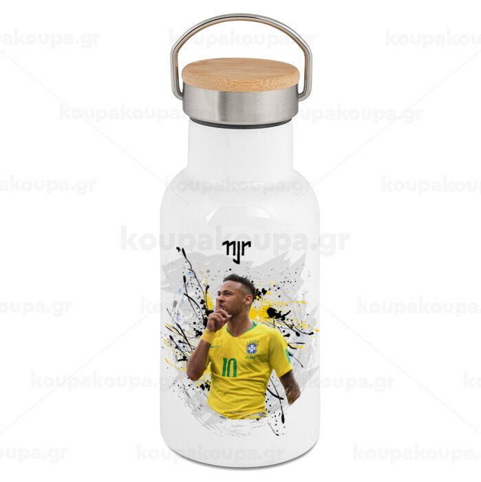 Neymar JR, Metallic thermos (Stainless steel) White with wooden lid (bamboo), double-walled, 350ml