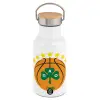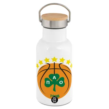 PAO BC, Metallic thermos (Stainless steel) White with wooden lid (bamboo), double-walled, 350ml