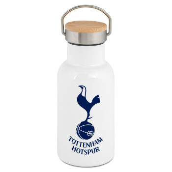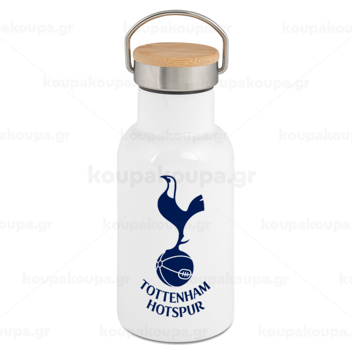 Tottenham Hotspur, Metallic thermos (Stainless steel) White with wooden lid (bamboo), double-walled, 350ml