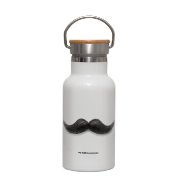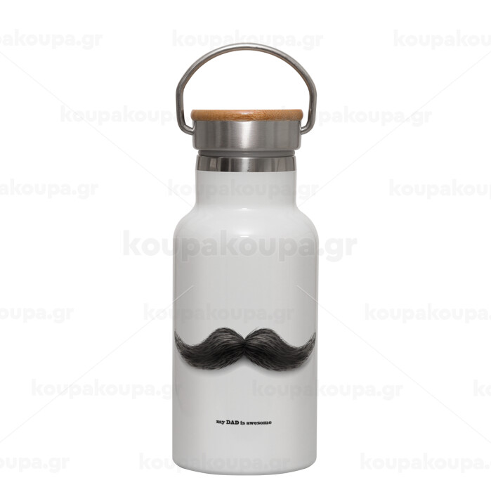 Ο καλύτερος μουστακαλής του κόσμου!!!, Metallic thermos (Stainless steel) White with wooden lid (bamboo), double-walled, 350ml