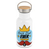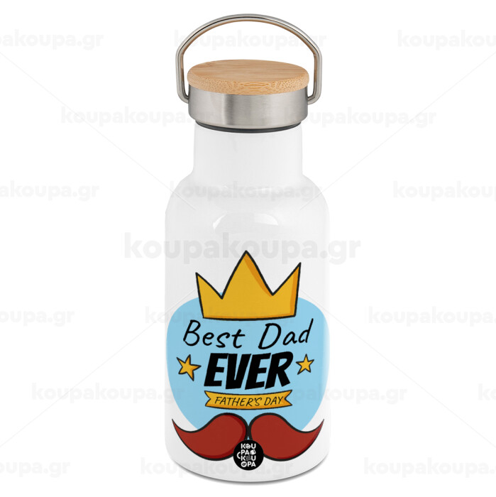 King, Best dad ever, Metallic thermos (Stainless steel) White with wooden lid (bamboo), double-walled, 350ml