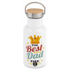 The Best DAD ever, Metallic thermos (Stainless steel) White with wooden lid (bamboo), double-walled, 350ml
