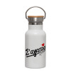 Σ΄ αγαπώ!!!, Metallic thermos (Stainless steel) White with wooden lid (bamboo), double-walled, 350ml