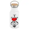 comics hands love, Metallic thermos (Stainless steel) White with wooden lid (bamboo), double-walled, 350ml