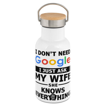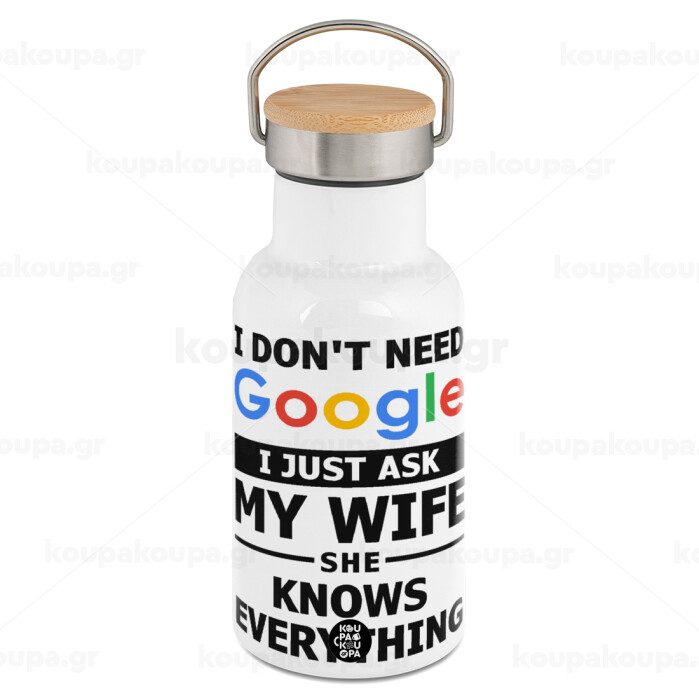 I don't need Google, just ask my WIFE, Metallic thermos (Stainless steel) White with wooden lid (bamboo), double-walled, 350ml