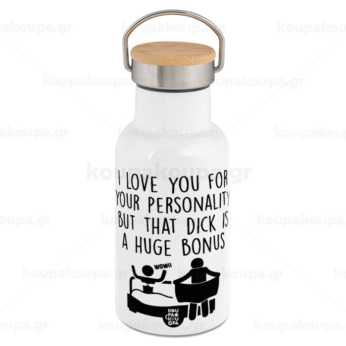 I Love You for Your Personality But that D... Is a Huge Bonus , Metallic thermos (Stainless steel) White with wooden lid (bamboo), double-walled, 350ml