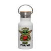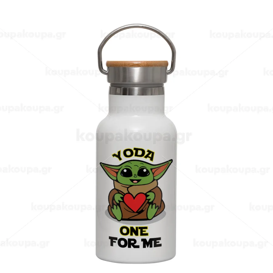 Yoda, one for me , Metallic thermos (Stainless steel) White with wooden lid (bamboo), double-walled, 350ml