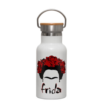 Frida, Metallic thermos (Stainless steel) White with wooden lid (bamboo), double-walled, 350ml