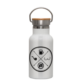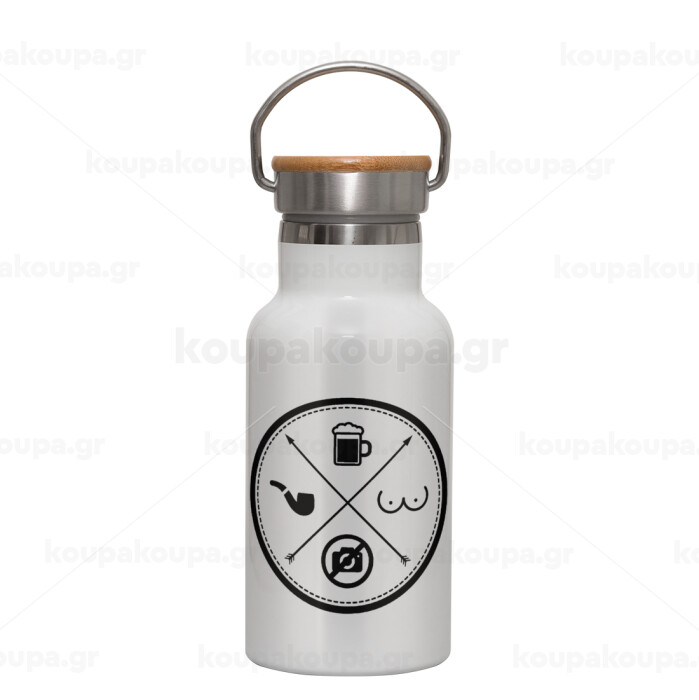 The Bachelor Rules, Metallic thermos (Stainless steel) White with wooden lid (bamboo), double-walled, 350ml