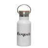 Bonjour, Metallic thermos (Stainless steel) White with wooden lid (bamboo), double-walled, 350ml