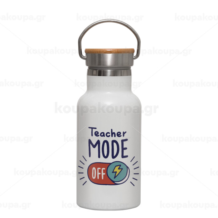 Teacher mode, Metallic thermos (Stainless steel) White with wooden lid (bamboo), double-walled, 350ml